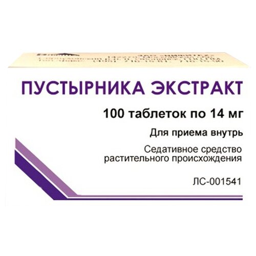 Extrait d'agripaume* comp. 14 mg n°100.Augmentation de l'excitabilité nerveuse, neurasthénie, insomnie, dystonie neurocirculatoire. Sensibilité individuelle accrue aux composants du médicament. Ulcère peptique de l'estomac et du duodénum en phase aiguë, hypotension artérielle, déficit en sucrase/isomaltase, intolérance au fructose, malabsorption du glucose-galactose, grossesse, allaitement, âge de moins de 12 ans. Si vous souffrez d'une des maladies listées, assurez-vous de consulter. avant de prendre le médicament avec un médecin. Avec prudence Pour les patients atteints de diabète sucré et ceux qui suivent un régime pauvre en glucides. Par comprimé : Ingrédient actif : Extrait d'agripaume, épais en termes de matière sèche - 14 mg Excipients Sucre (saccharose) - 98,2. mg Cellulose microcristalline - 48,0 mg Fécule de pomme de terre - 33,5 mg Polyvinylpyrrolidone (povidone) de bas poids moléculaire - 4,2 mg Stéarate de calcium - 2,0 mg Aerosil (dioxyde de silicium colloïdal) - 0,1 mg Poids du comprimé - 200 m Comprimés cylindriques plats avec biseau, du brun clair avec une teinte jaunâtre au brun avec une teinte grisâtre. Les inclusions plus foncées et plus claires sont autorisées. Il a un effet calmant, réduit la fréquence et augmente la force des contractions cardiaques et présente des propriétés hypotensives. La nature de l'action est similaire à celle des préparations de valériane. Par voie orale, adultes et enfants de plus de 12 ans, 1 comprimé 3 à 4 fois par jour, 1 heure avant les repas. La durée du traitement est de 3 à 4 semaines. Des réactions allergiques et une dyspepsie sont possibles. Si l'un des effets secondaires indiqués dans les instructions s'aggrave ou si vous remarquez d'autres effets secondaires non répertoriés dans les instructions, informez votre médecin. Renforce l'effet des somnifères et des médicaments analgésiques. À ce jour, aucun cas de surdosage n'a été enregistré. Les patients atteints de diabète sucré doivent tenir compte du fait qu'un comprimé du médicament contient environ 0,132 g de glucides (0,011 XE). Pendant la période de traitement, des précautions doivent être prises lors de la conduite de véhicules et lors d'autres activités potentiellement dangereuses nécessitant une concentration et une vitesse accrues. de réactions psychomotrices. S'il n'y a aucun effet lors de la prise du médicament pendant 2 semaines, il est recommandé de consulter un médecin sans ordonnance.