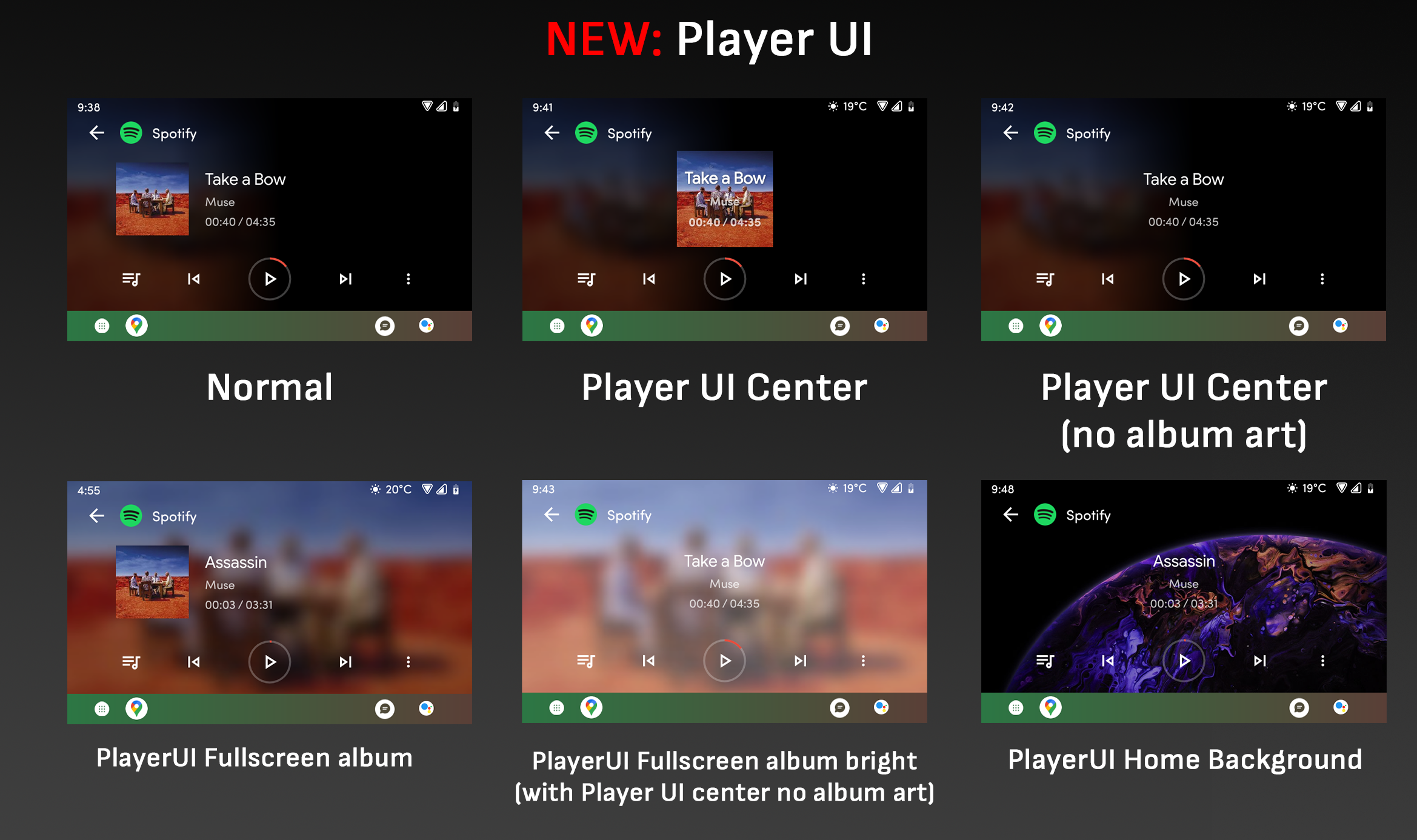 PlayerUI options will allow to give a brand new look to any player User Interface with brand new styles. Choose if you want a big fullscreen album art of the the currently playing content, or have the currently set wallpaper (you know how you can change it, right? 😉), and combine it with either the stock look or with the center styles!