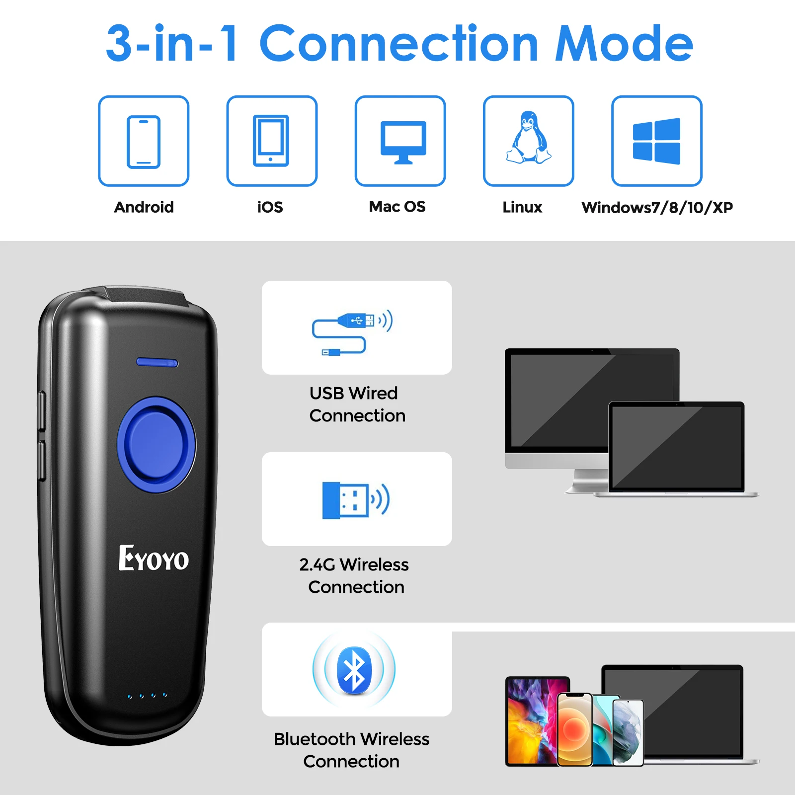 gyafTyWWYtLooked for Eyoyo EY-023 QR Code Scanner Bluetooth Portable 2D Bar Code Scanner Compatible USB 2.4GHz Wireless Bluetooth Barcode Reader for a long time, but could not find it? Bring to your attention Eyoyo EY-023 QR Code Scanner Bluetooth Portable 2D Bar Code Scanner Compatible USB 2.4GHz Wireless Bluetooth Barcode Reader with the best price!