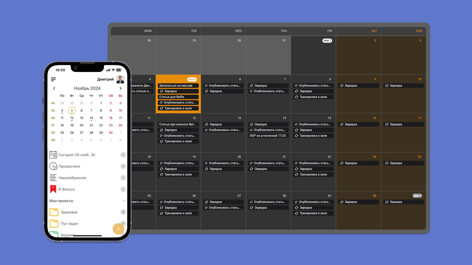 Еженедельник приложение