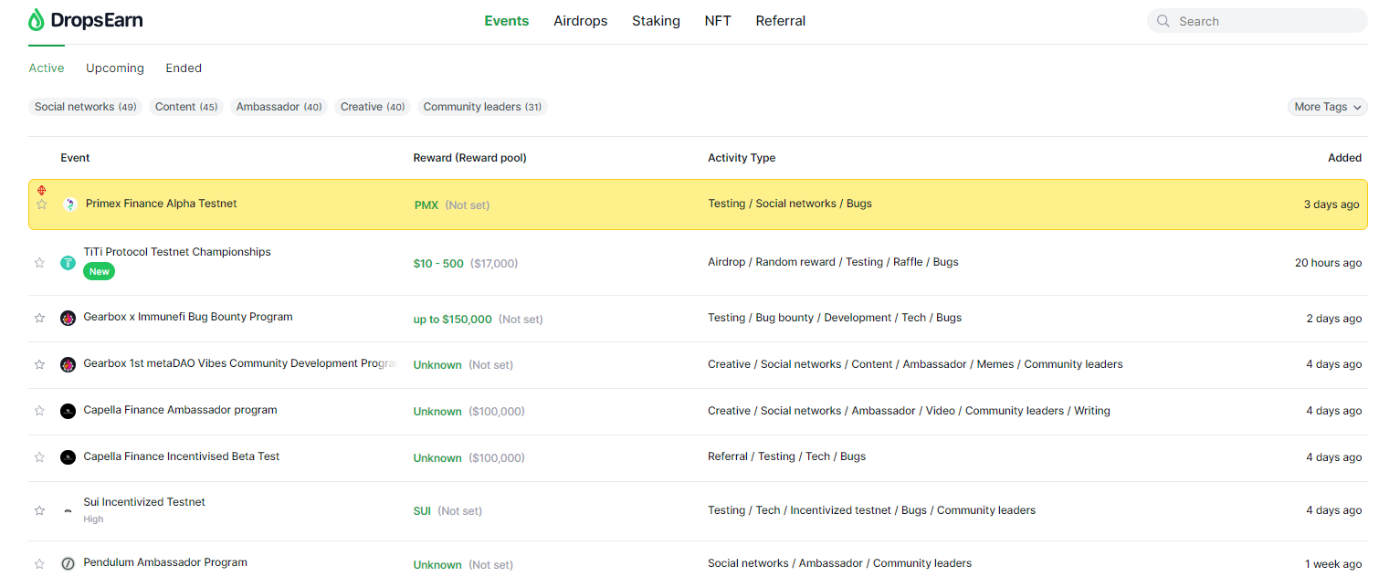 8 новых эвента на Dropsearn