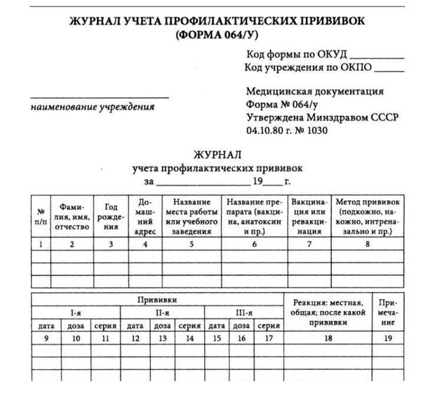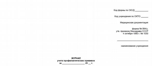 Ф 064 у журнал учета профилактических прививок