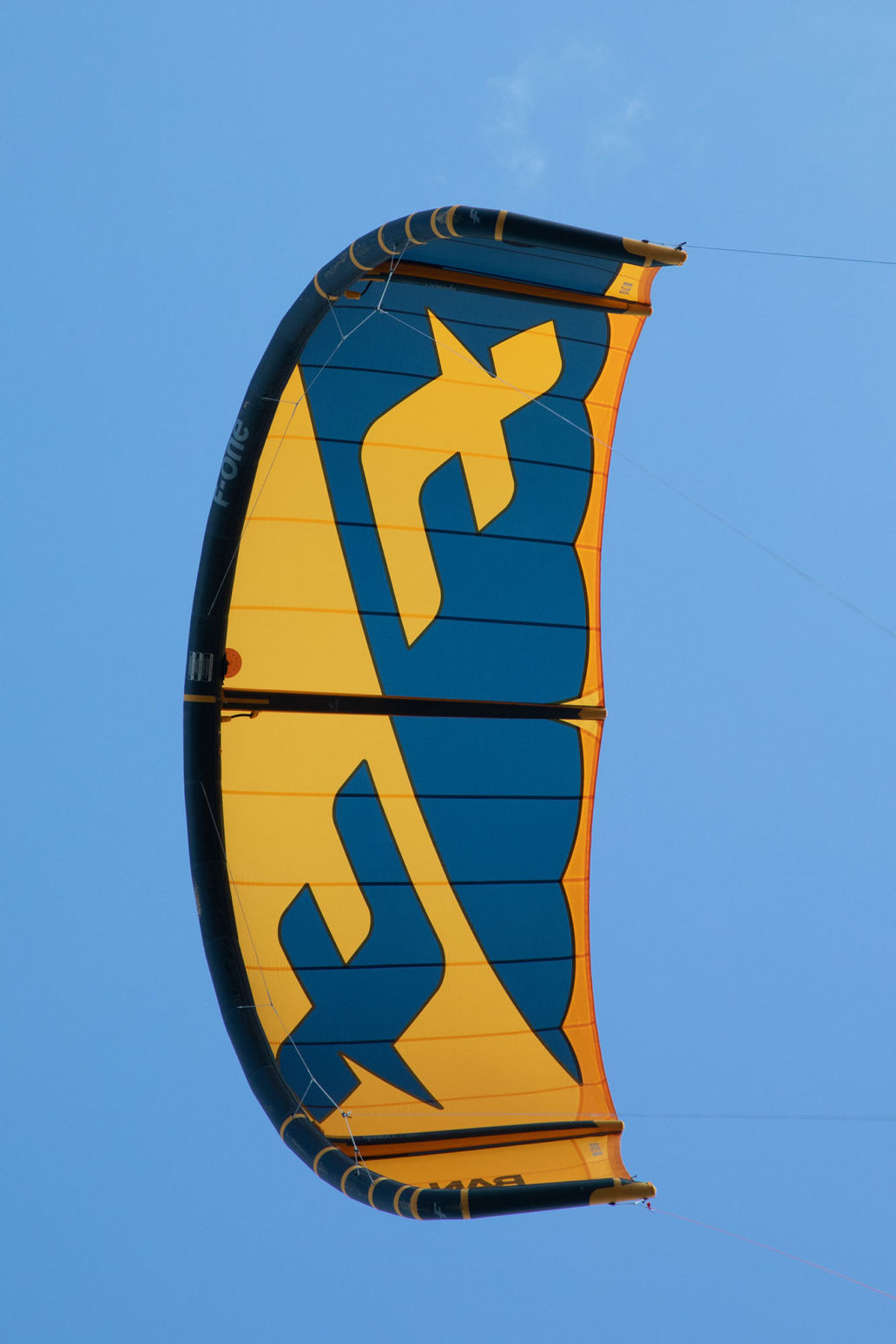 This shape was the result of a design research towards maximum optimization of the aerodynamic performances of the kite and of its depower. It gives the possibility to fit more canopy area in the middle sections to create more projected area while the C Shape makes sure the kite remains responsive and fluid.