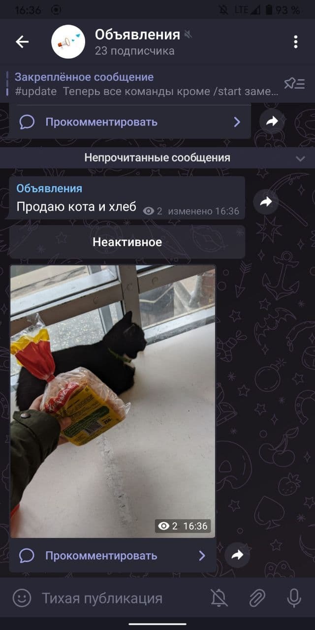 Вот как будет выглядеть Ваше объявление в канале: