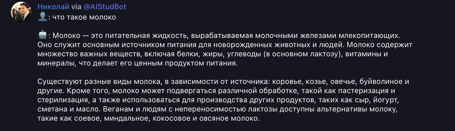 - Да, мы разработали дополнительного бота, который имеет общий баланс с основным. t.me/AIStudBot. С его помощью можно быстро, не выходя из чата, узнать интересный факт, придумать смешной рассказ или решить пример.
