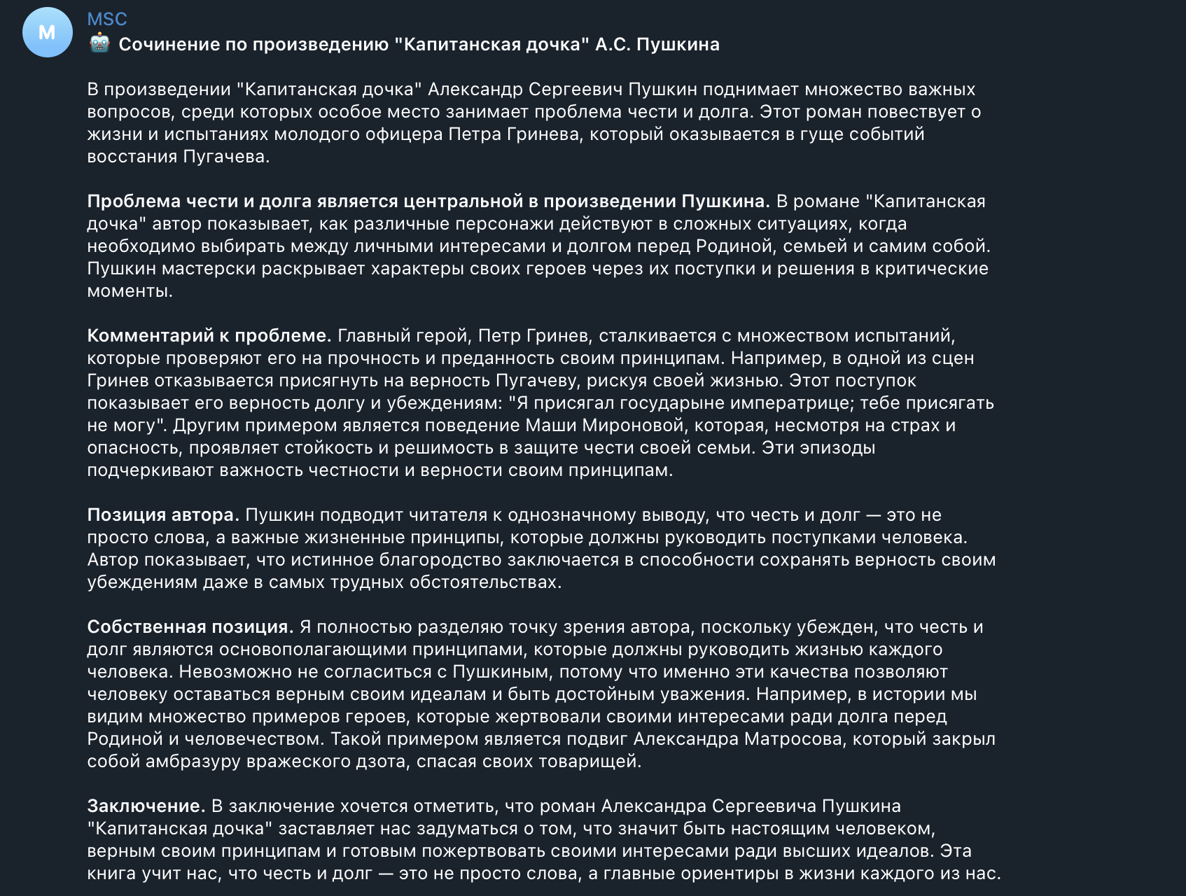 В ответе мы получаем достаточно хорошее сочинение.