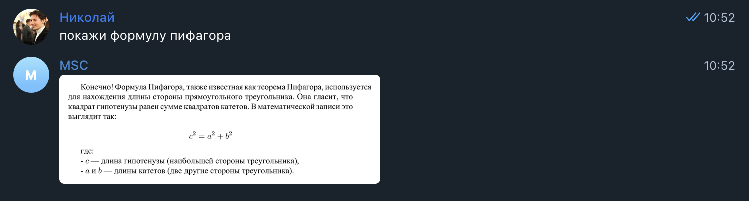 + Фотографии для формул - настройка, позволяющая присылать решение, содержащее в себе формулы, в виде картинки. (Примеры ниже)