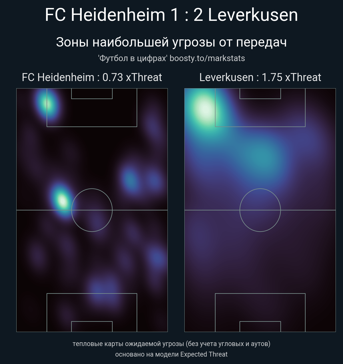 xThreat без учета угловых: 0.73 - 1.75