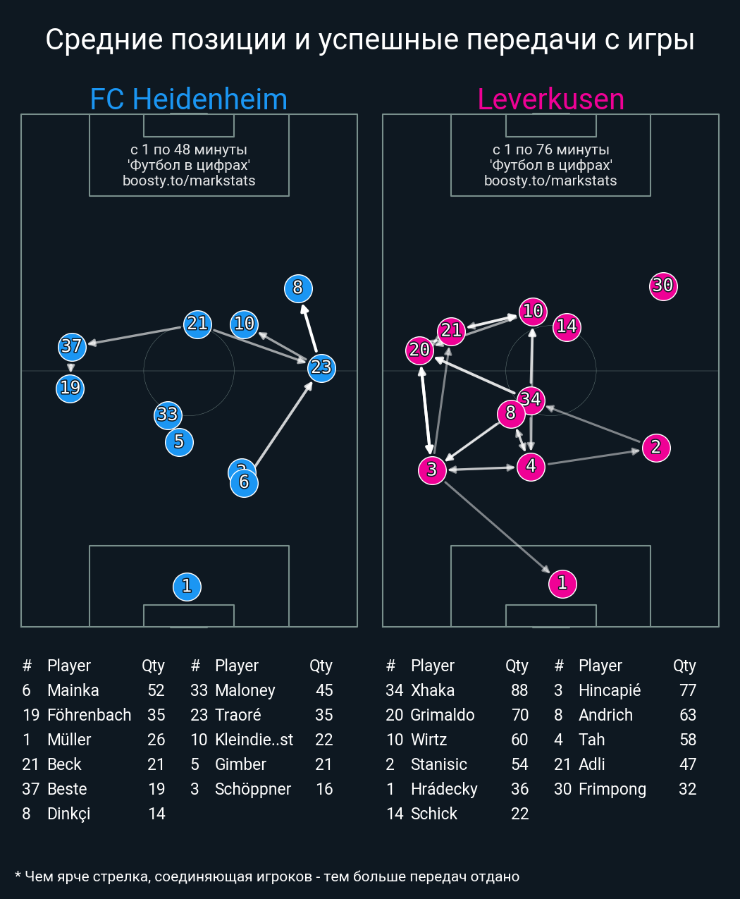 47 успешных передач из 60 попыток (1 ассист, 3 под удар, 4 с продвижением, 18 на трети соперника)