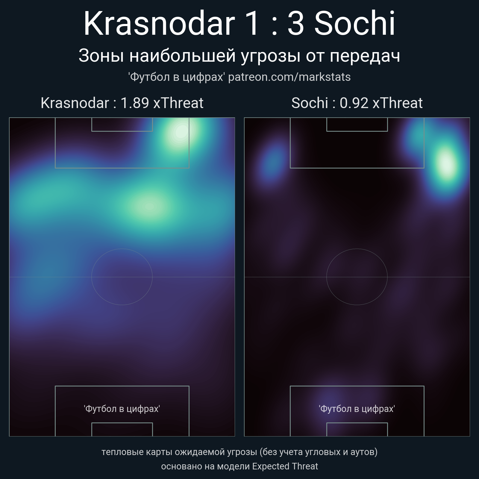 ▪ xThreat без учета угловых: 1.89 - 0.92