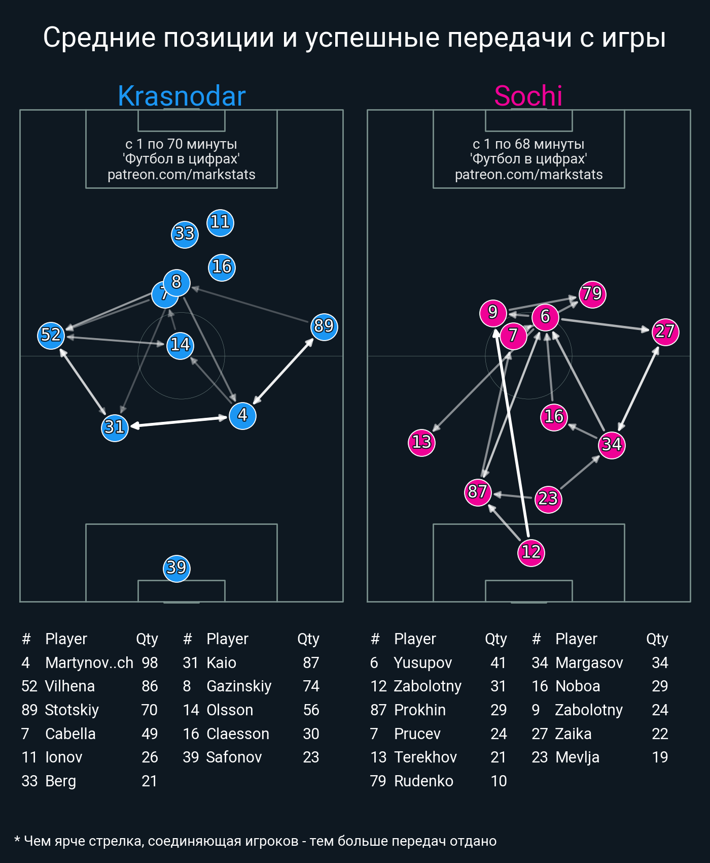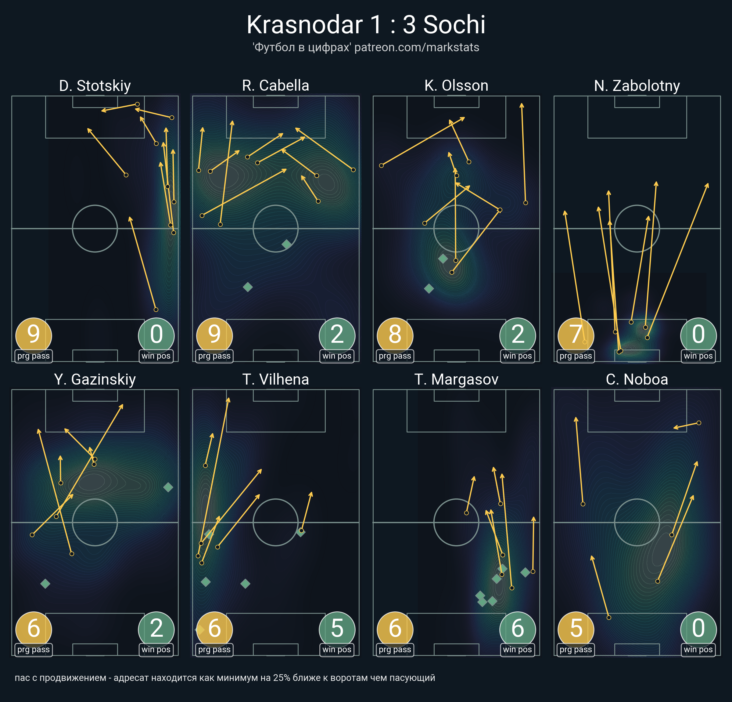 ▪ 39 успешных передач из 51 попыток (9 с продвижением, 20 на трети соперника)