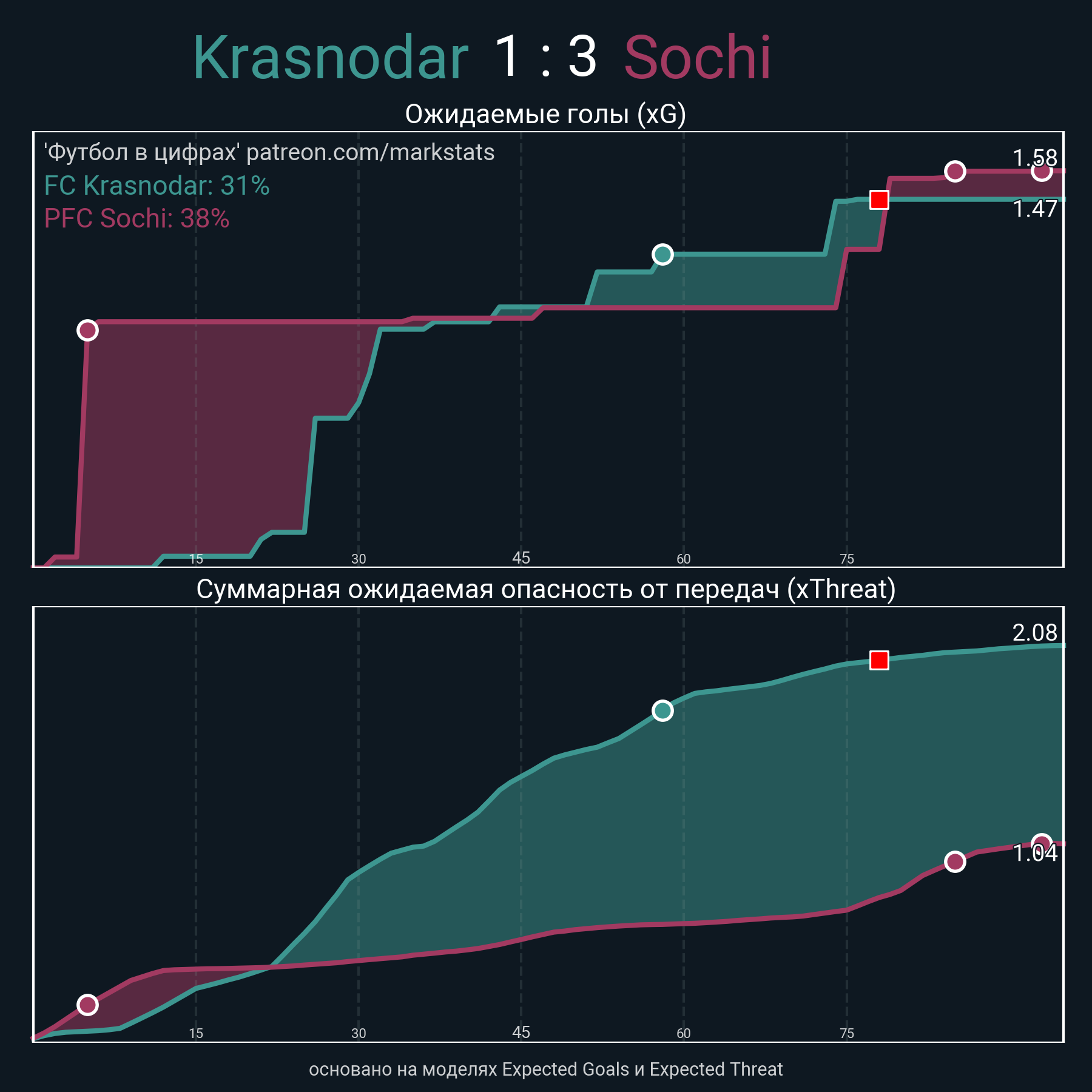 Очки xThreat с игры: