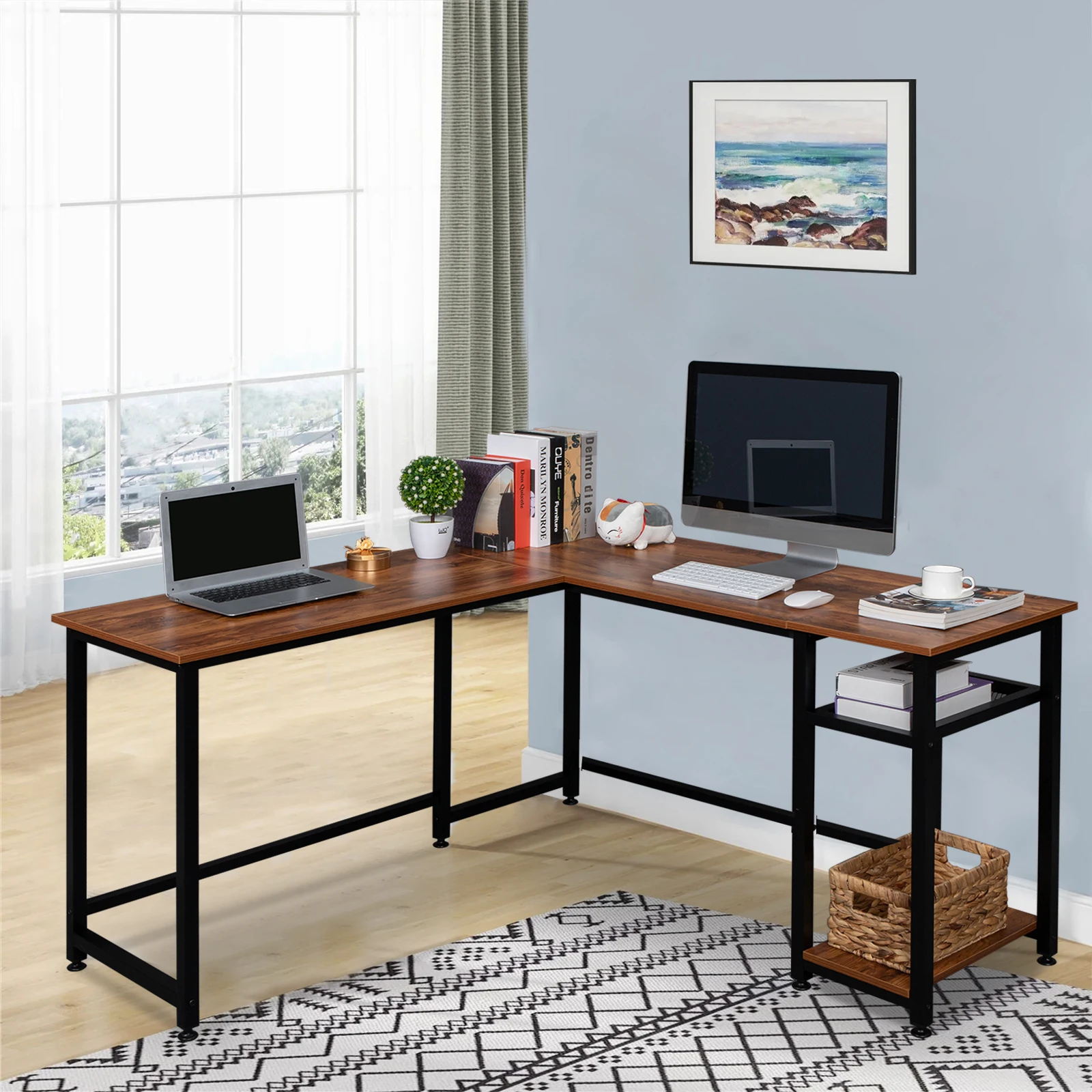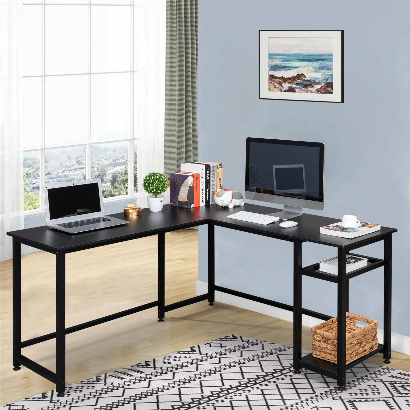 ytpMKNZFSЗдесь вы сможете купить FCH L-Shaped Right Angle Splicing Computer Desk 140CM Particleboard Paste Triamine Office Study Table Retro/Black Color[US-W] с бесплатной доставкой до вашего почтового отделения.