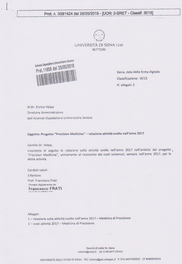 FINANZIAMENTI REGIONALI MEDICINA PRECISIONE ?-UNIVERSITA' DI SIENACHE FINE ANNO FATTO I FINANZIAMENTI REGIONALI PER LA MEDICINA DI PRECISIONE?