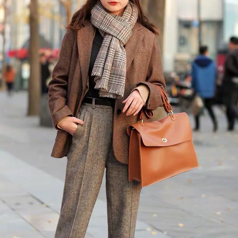 "FIRMRANCH Simple Solid Color Style Large-Capacity Commuter Shoulder Cowhide Leather Briefcase Flip Tote 14-Inch Computer Bag" * Buy Now With Free Shipping Just For $54