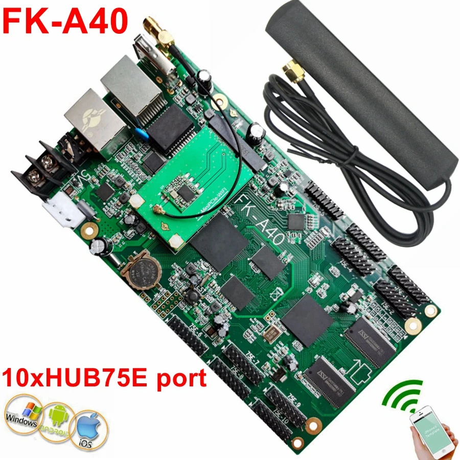 taYMNCKhSCHere you can buy FK-A40 Wifi Full Color LED Control Card Network And USB Asynchronous 10*hub75 Ports P2,P2.5,P3,P4,P5,P10,P6,P8 Video Controller with free delivery to your post office.