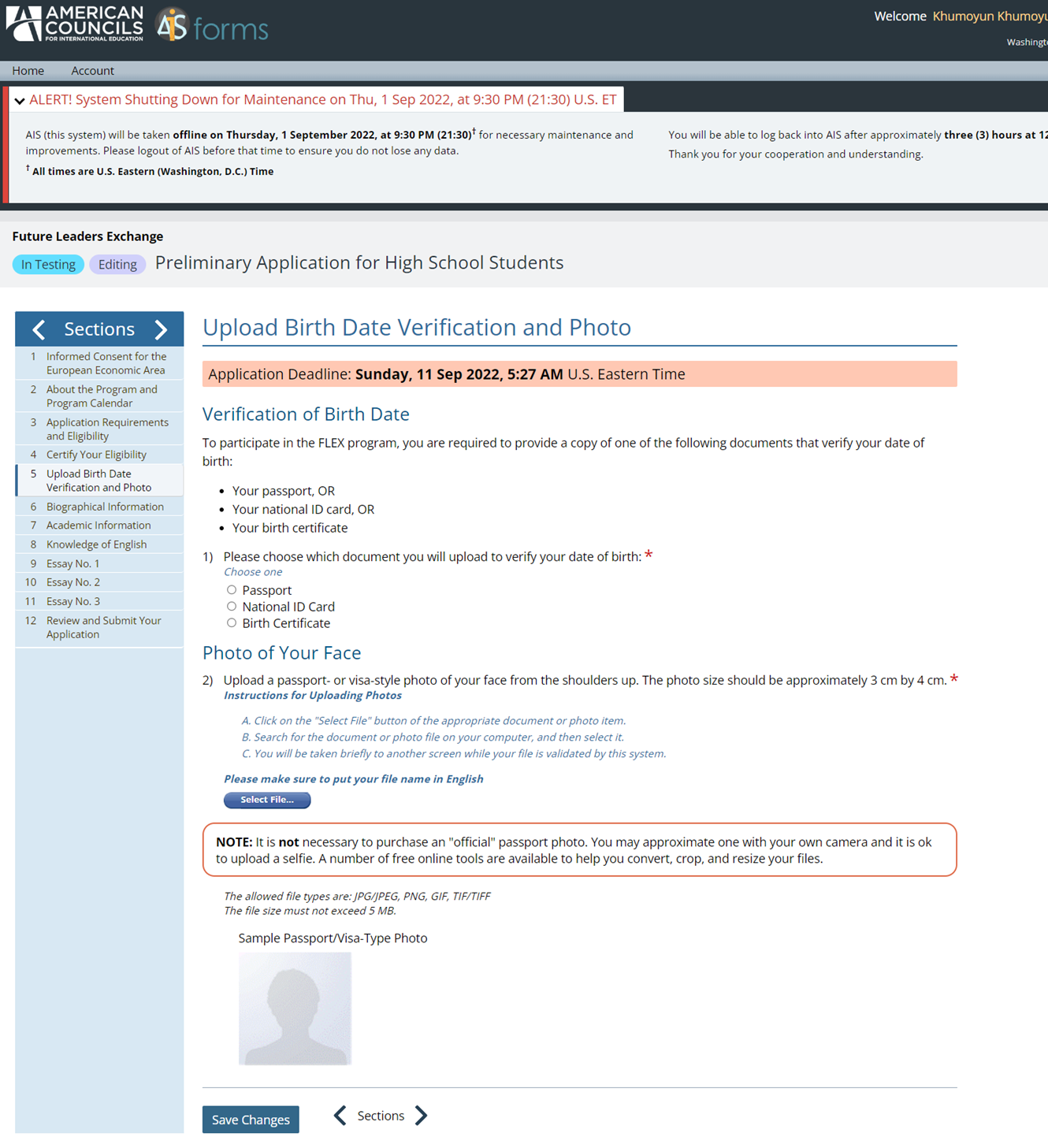 In Section 5 you upload a 3x4 passport photo and a copy of your passport/birth certificate/ID. Note: You don't need to buy a professional photo or take it separately. You can also upload it yourself by taking a selfie and adjusting the size. The photo should not be more than 5 megabytes. Attention, file names can only be with English characters.