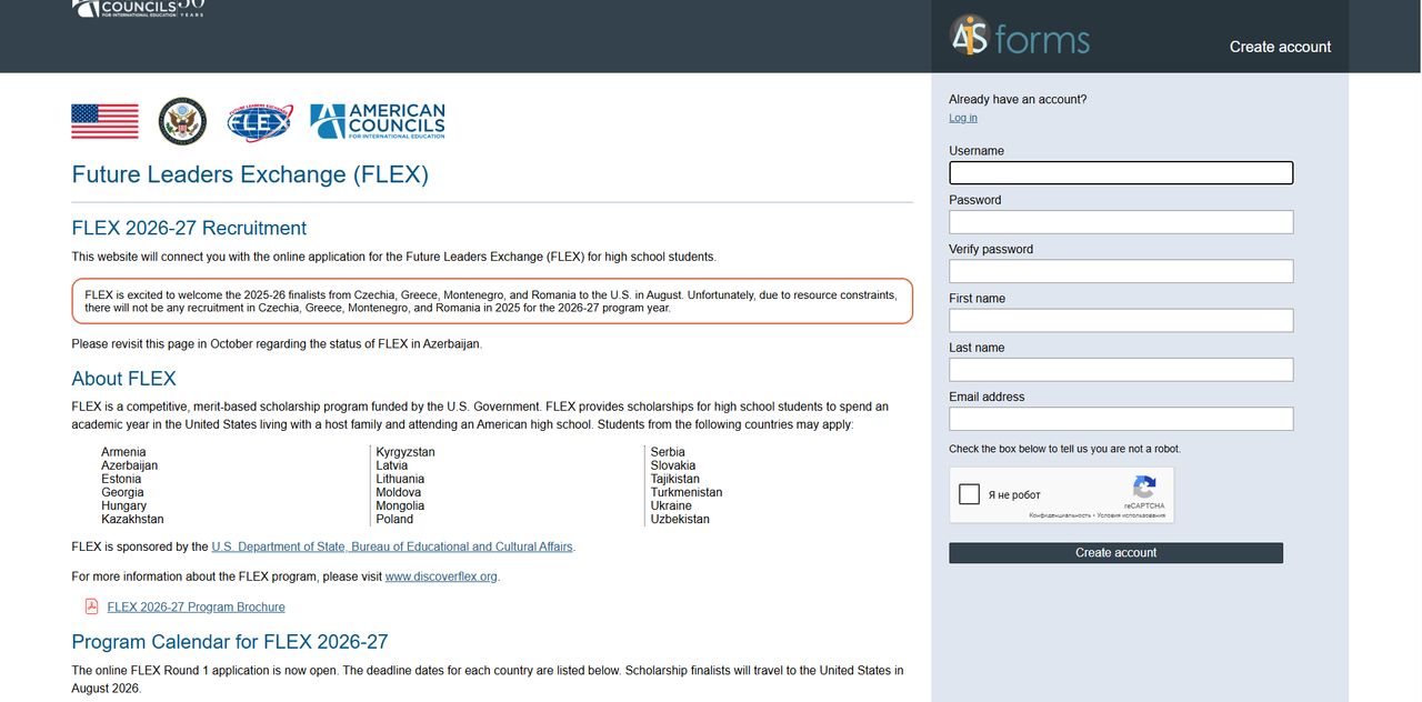 FLEX 2026-2027 online application guide for Uzbekistan
