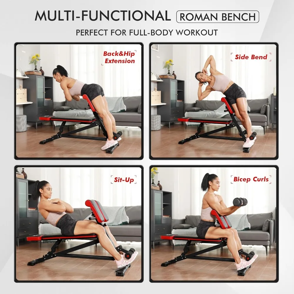 FLYBIRD Workout Bench, Multi-Functional Adjustable Weight Bench for Full Body Workout, Roman Chair for Hyper Back Extension - Купить с бесплатной доставкой
