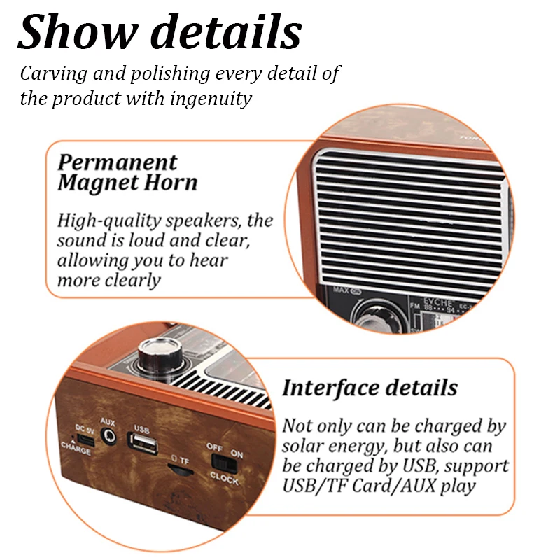 rHCfaPjauЗдесь вы сможете купить FM AM SW Retro Solar Radio Portable Receiver Bluetooth Speaker MP3 Music Player with LED Light Support USB TF Card AUX с бесплатной доставкой до вашего почтового отделения.