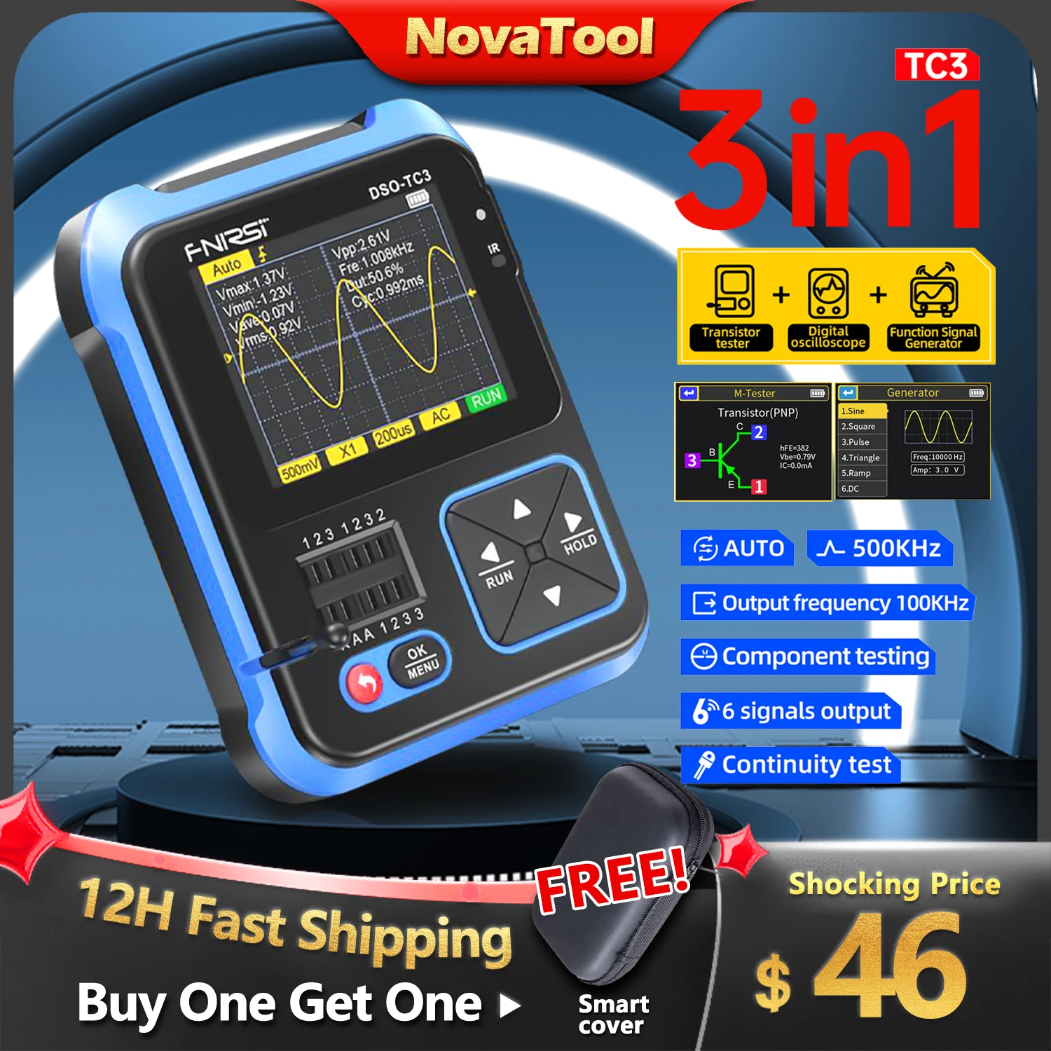 FNIRSI DSO-TC3 Digital Oscilloscope Transistor Tester Function Signal Generator 3 in 1 Multifunction Electronic Component Tester - Купить с бесплатной доставкой