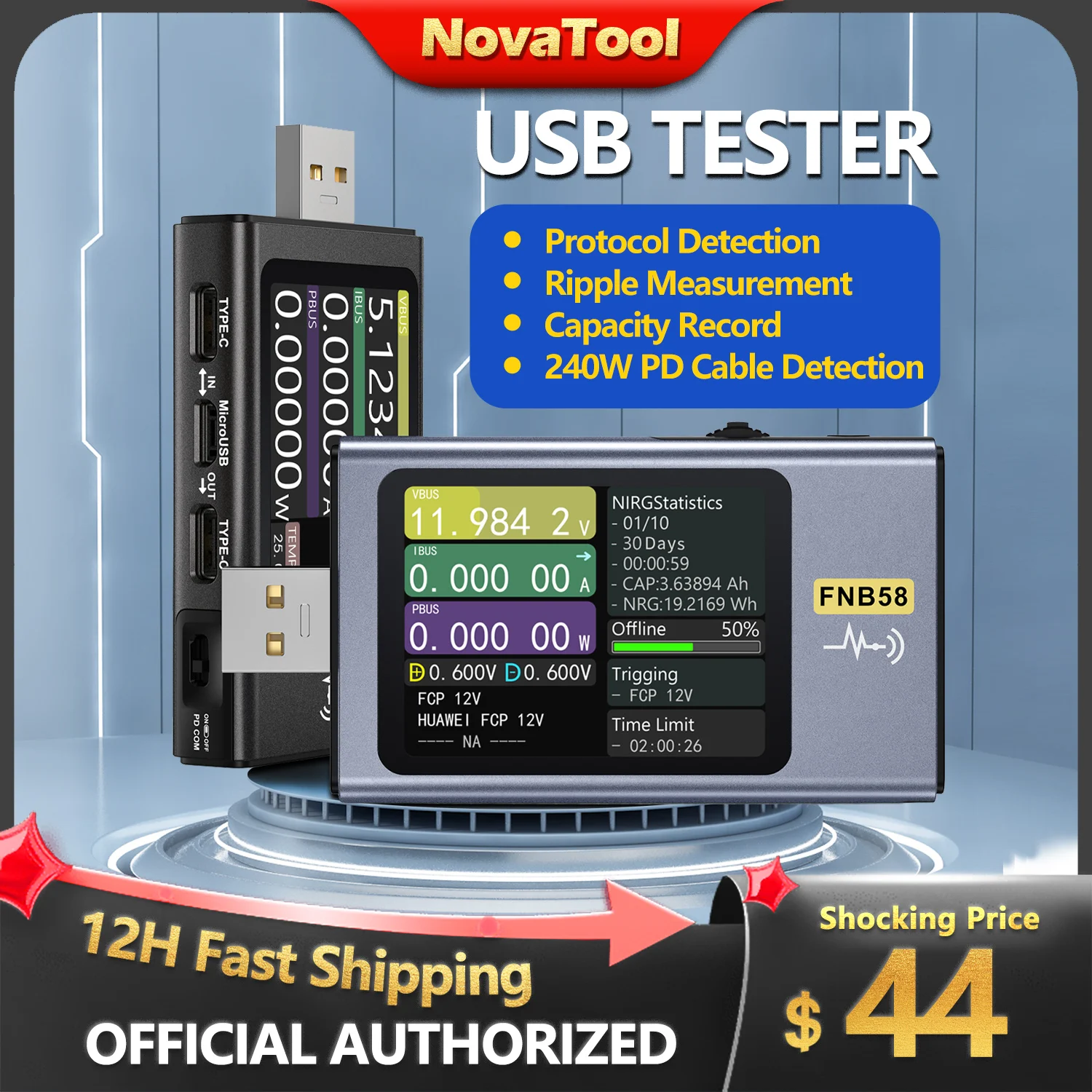 CZgLqpapHere you can buy FNIRSI-FNB58 Digital Voltmeter Ammeter USB Tester TYPE-C Fast Charge Detection Trigger Capacity Measurement Ripple with free delivery to your post office.