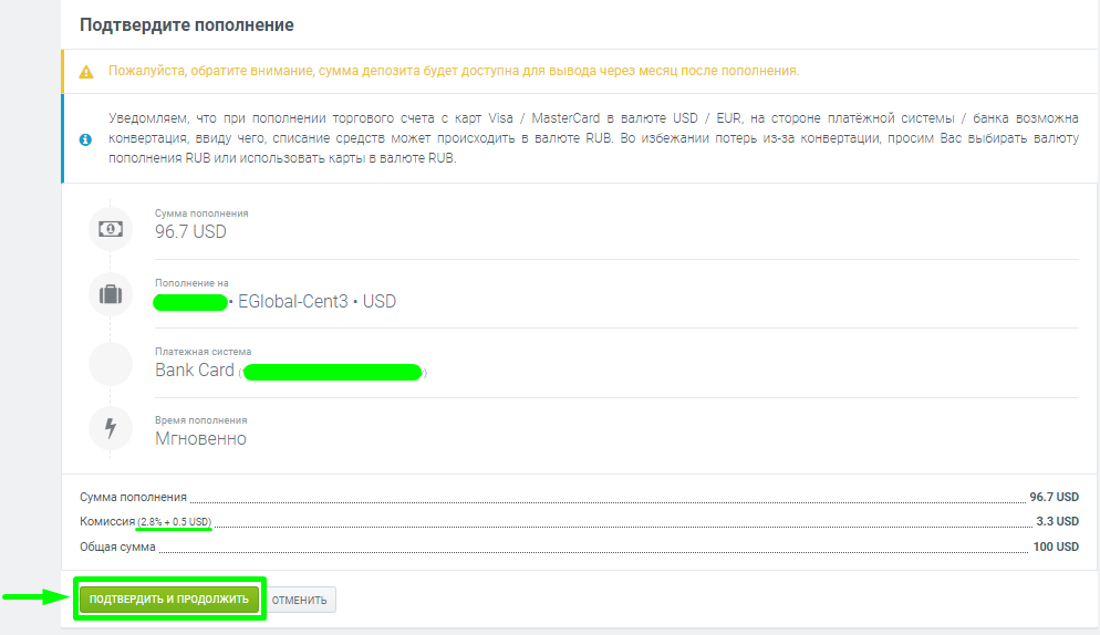 После ввода всех данных нажимаете на "подтвердить и продолжить"