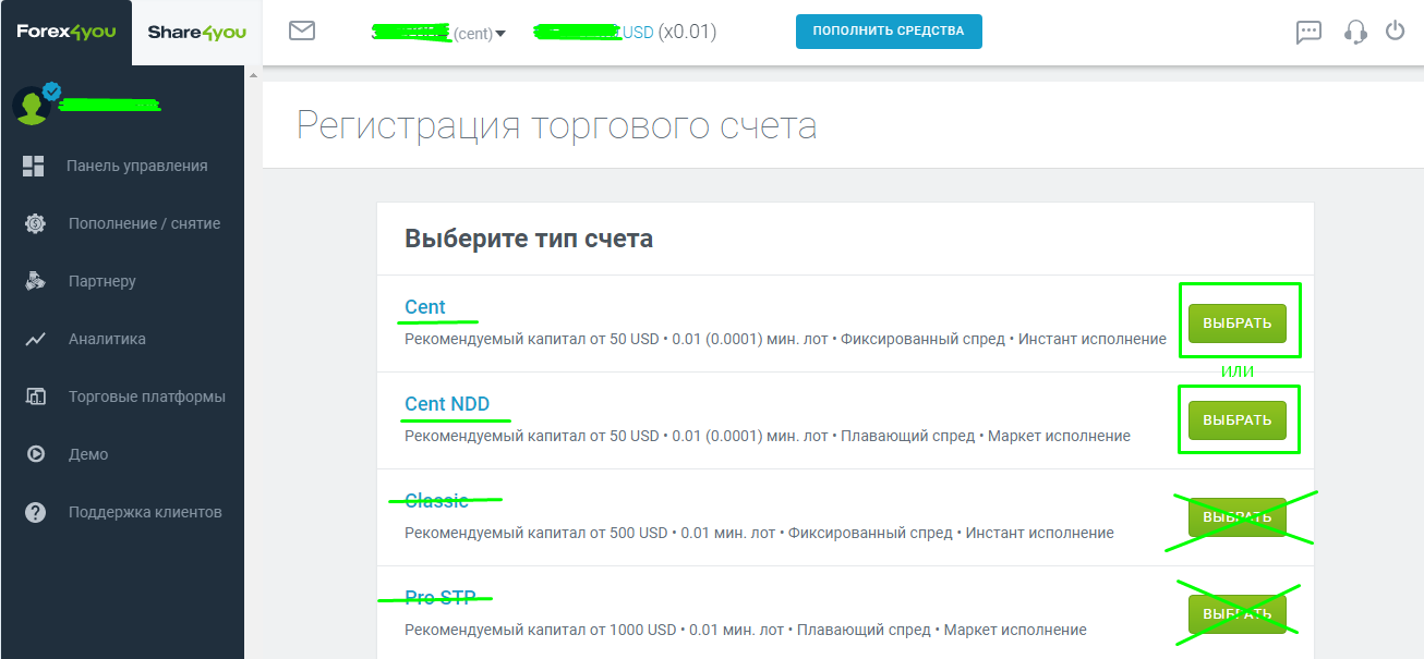 - Зарегистрироваться на сайте Forex4You