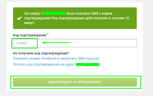 Далее на указанный вами номер телефона придет код подтверждения