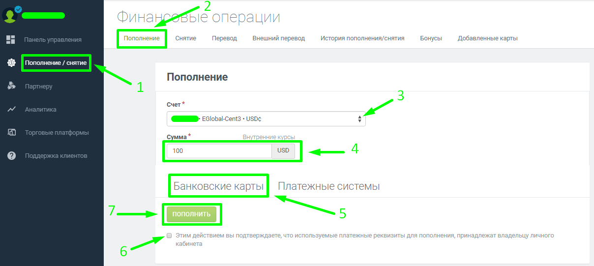 Пополнение торгового счёта