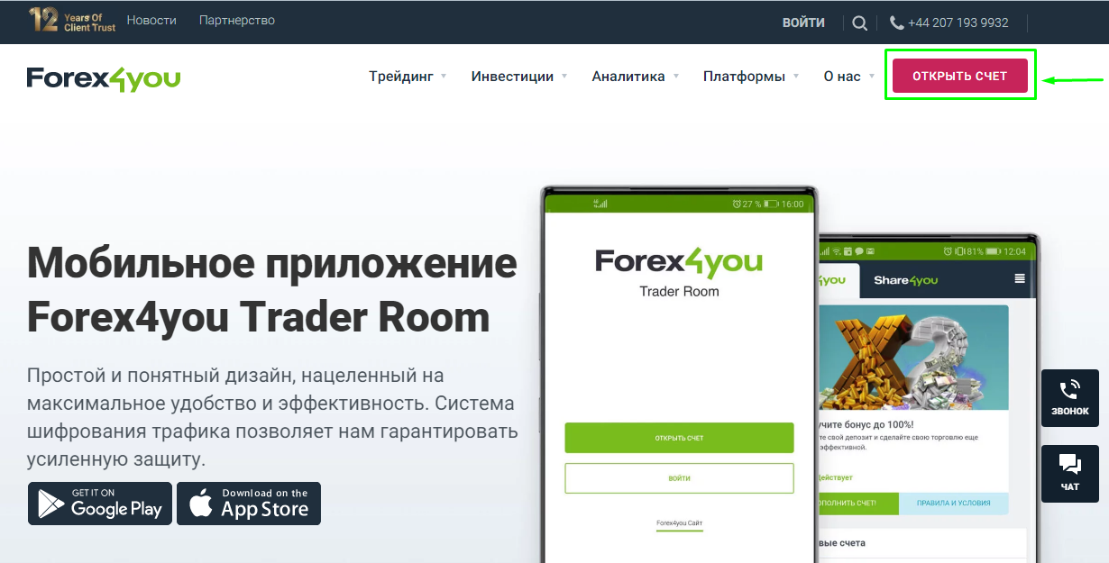 Перейдя по ссылке вы попадаете на сайт Forex4you