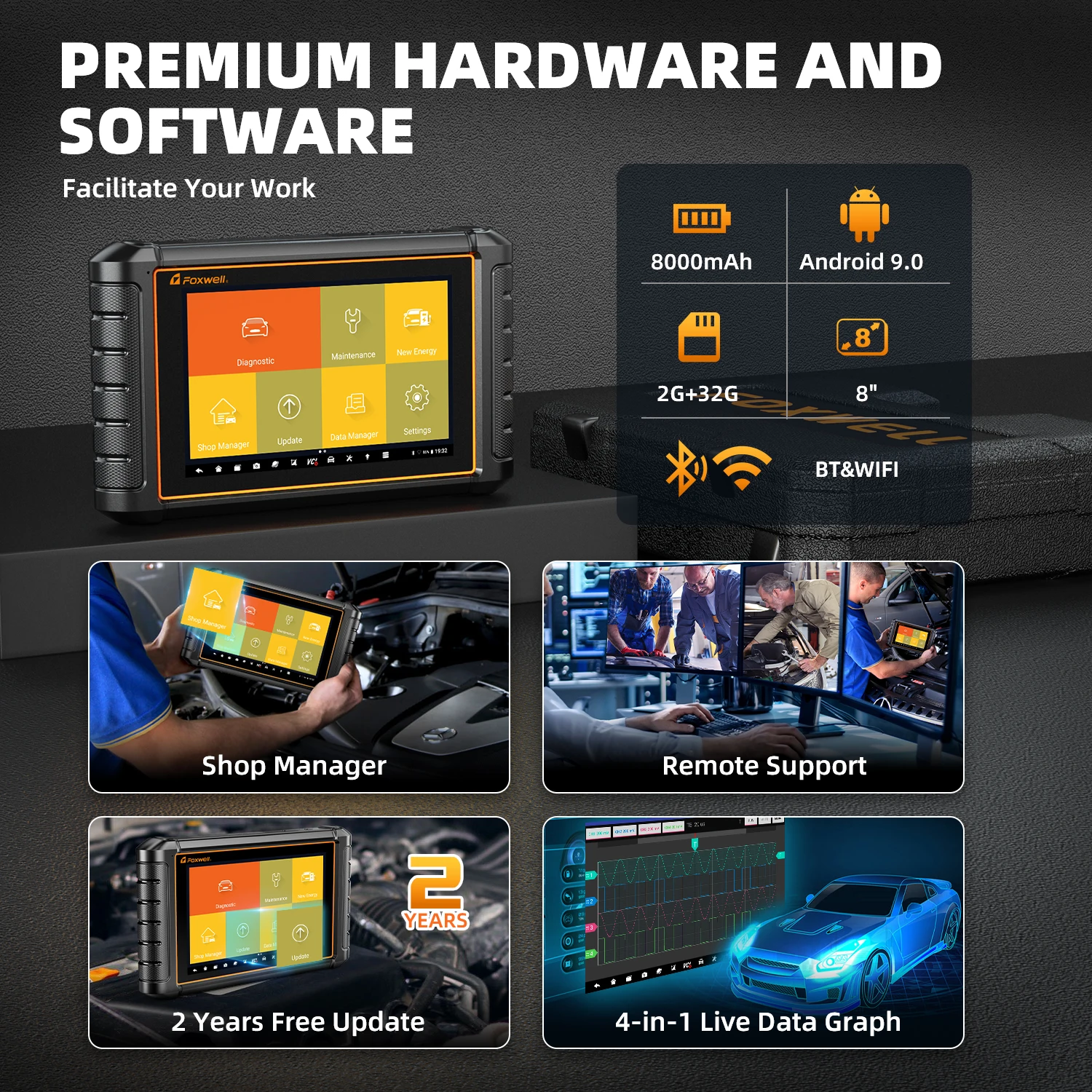 "FOXWELL NT909 OBD2 Bluetooth Bi-Directional Scan Tool ECU Coding 24+ Resets All System Car Diagnostic Scanner Upgraded NT809BT" * Buy Now With Free Shipping Just For $428