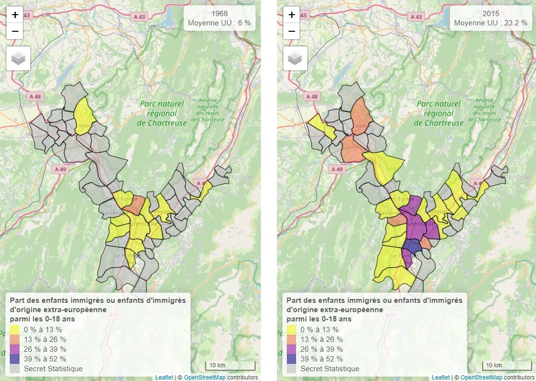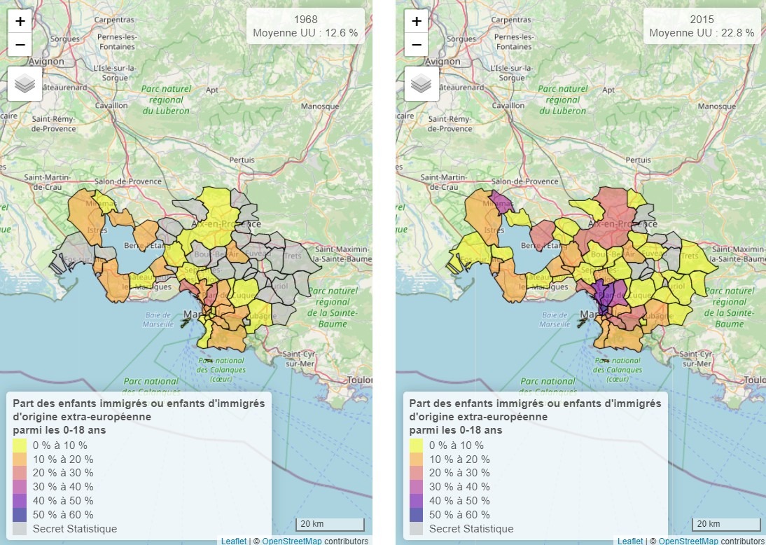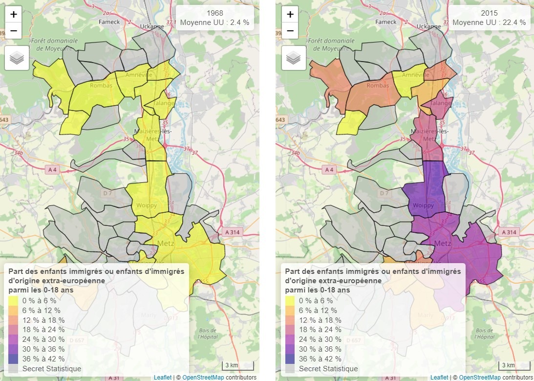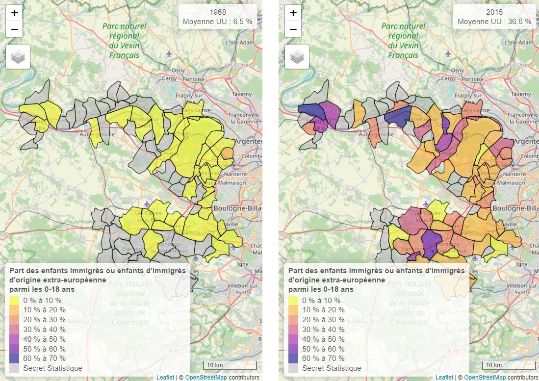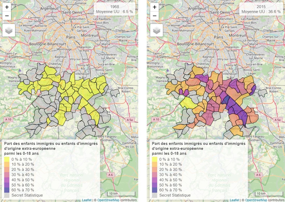 IV) Evolution of the number of non-European immigrants in French cities and regions.