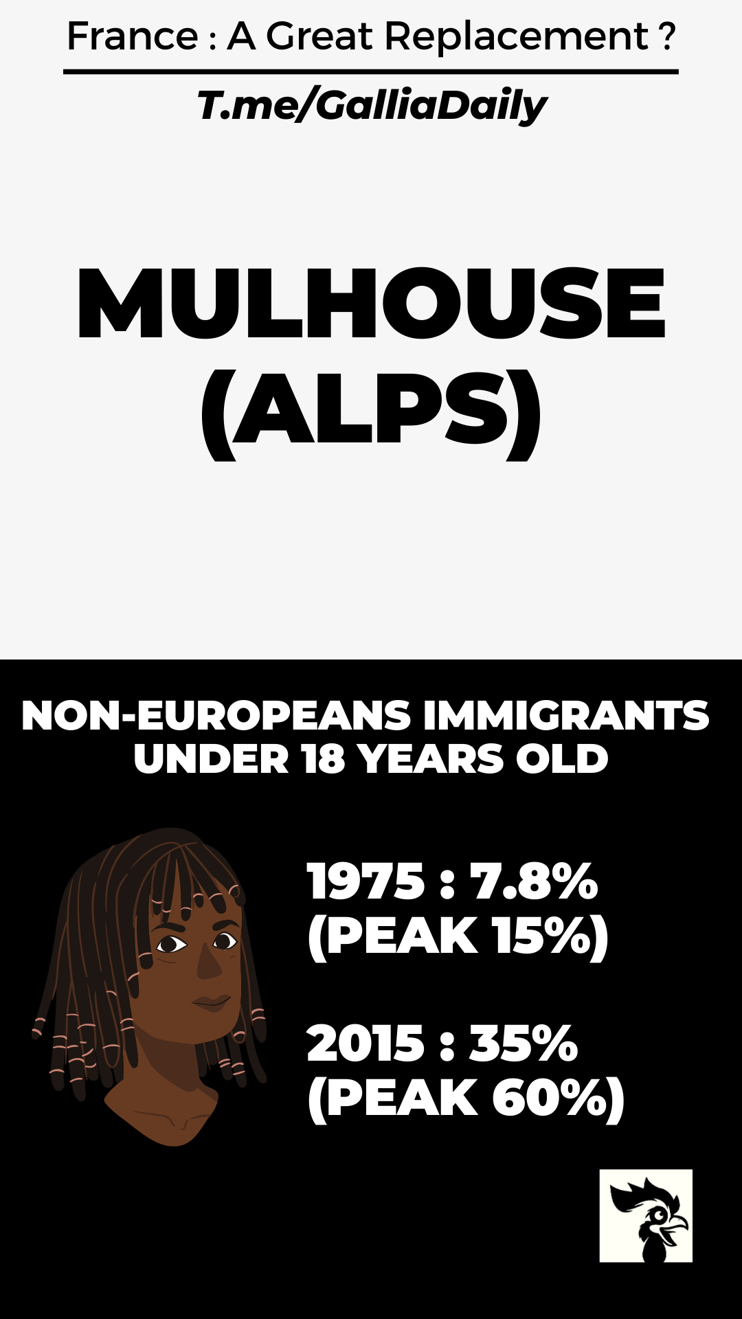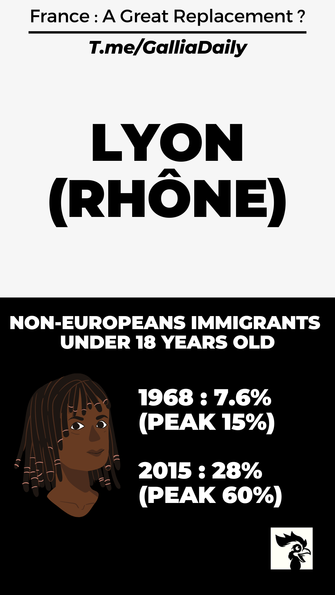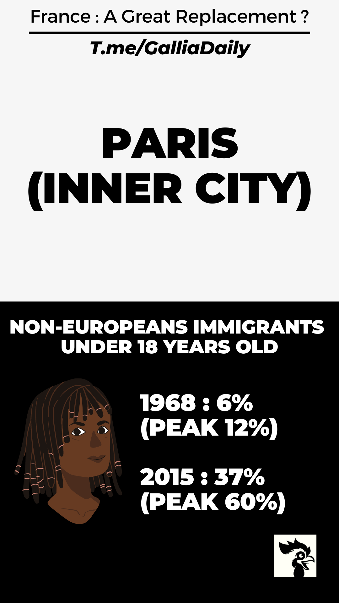 There is therefore a break in the continuity and homogeneity of the French population. With a shift from 99% ethnic French in the last century, to about 20% ethnic French 100 years later, in 2060.