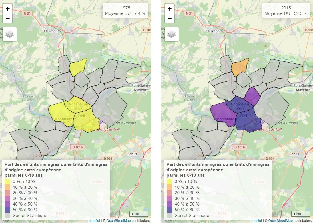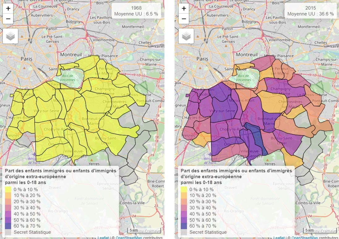 By compiling the data from each French hospital, it is therefore possible to have the percentage of non-European births over one year. And over several years a curve of the evolution of this percentage.
