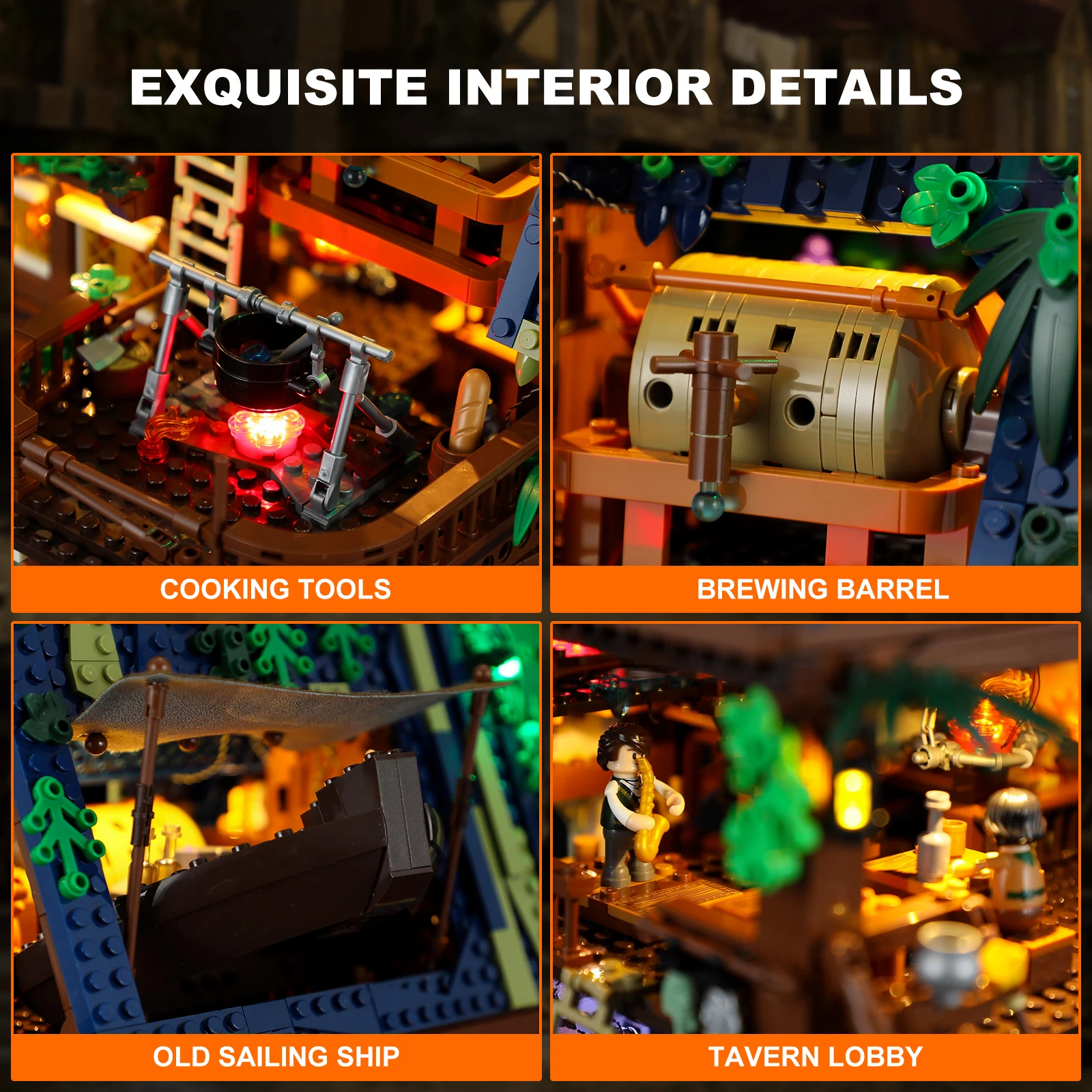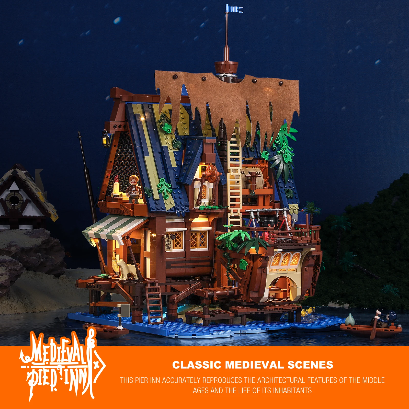 FUNWHOLE Medieval-Pier-Inn Lighting Building Bricks Set - Medieval Pier Inn LED Construction Model 2143 Pcs for Adults and Teens - Купить с бесплатной доставкой