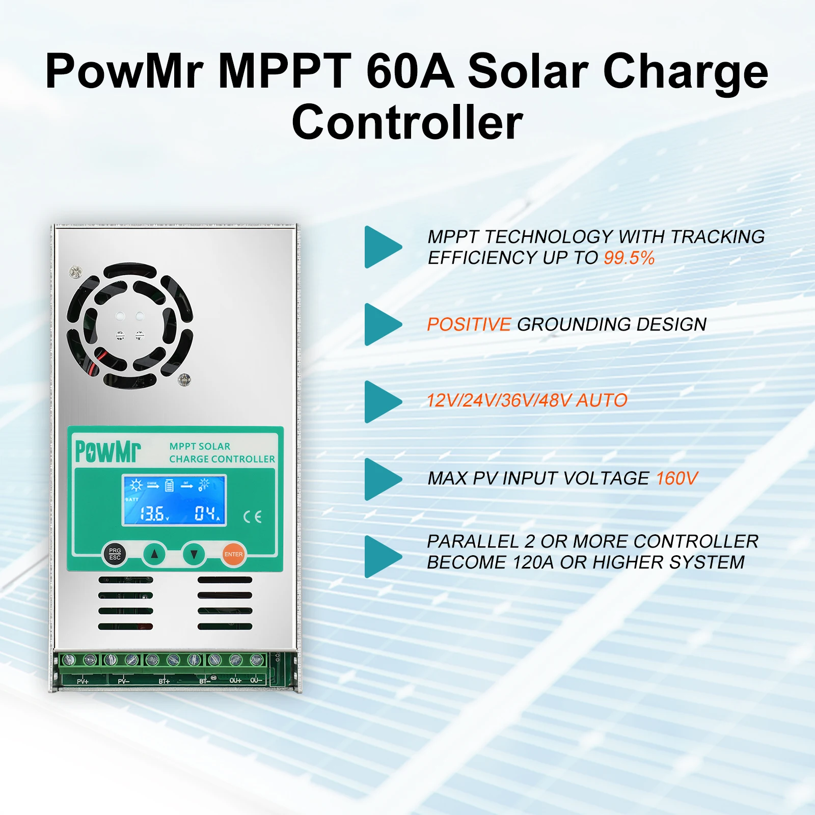 RqnUxkSyiHere you can buy Factory Direct MPPT 60A Solar Controller 12V/24V/36V/48V Automatic with Max PV Input 160V for Solar System Solar Regulator with free delivery to your post office.
