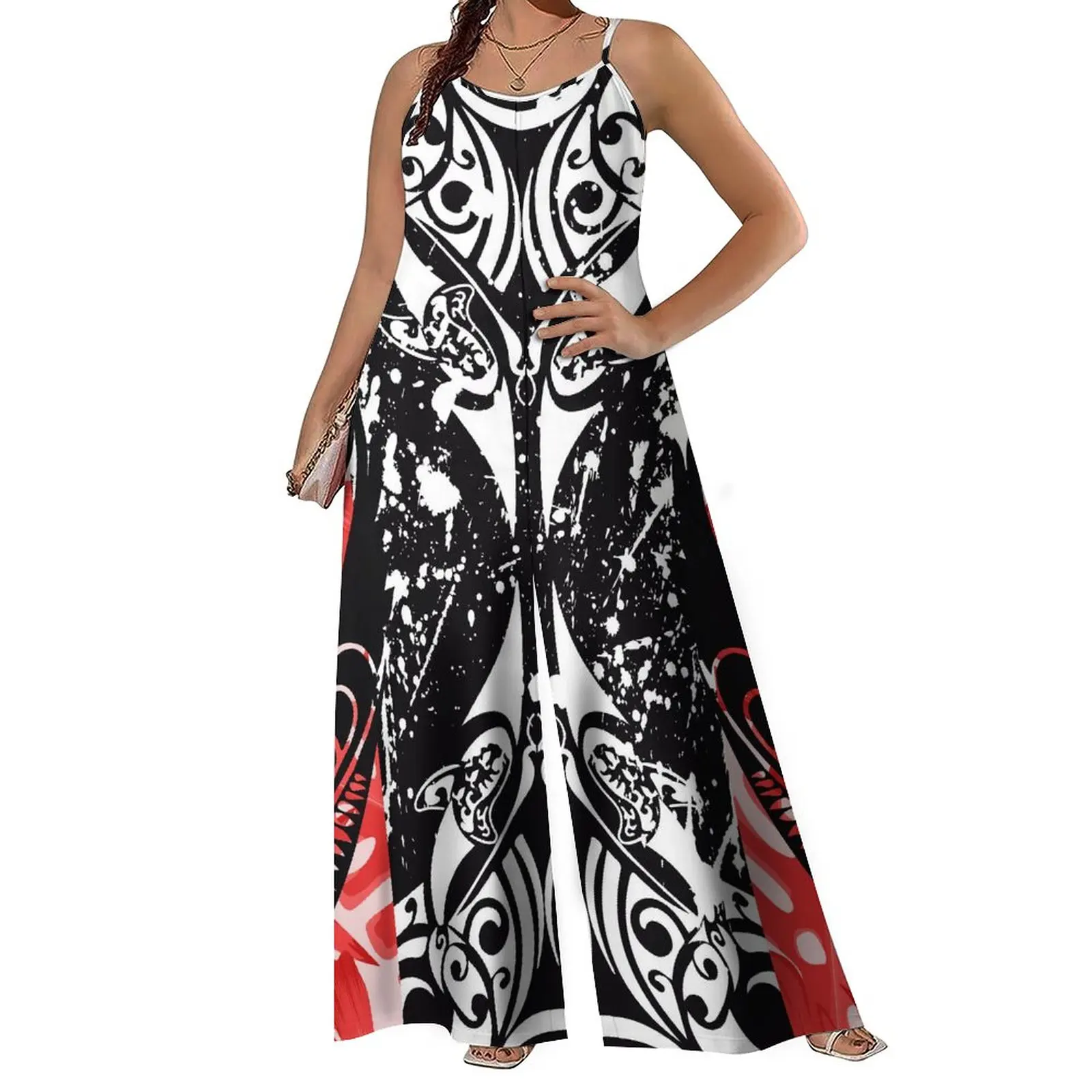 Factory Outlet Spaghetti Strap Sleeveless Lady Wide Leg Playsuits Polynesian Tribal Design Sublimation Print Yellow Rompers - Купить с бесплатной доставкой