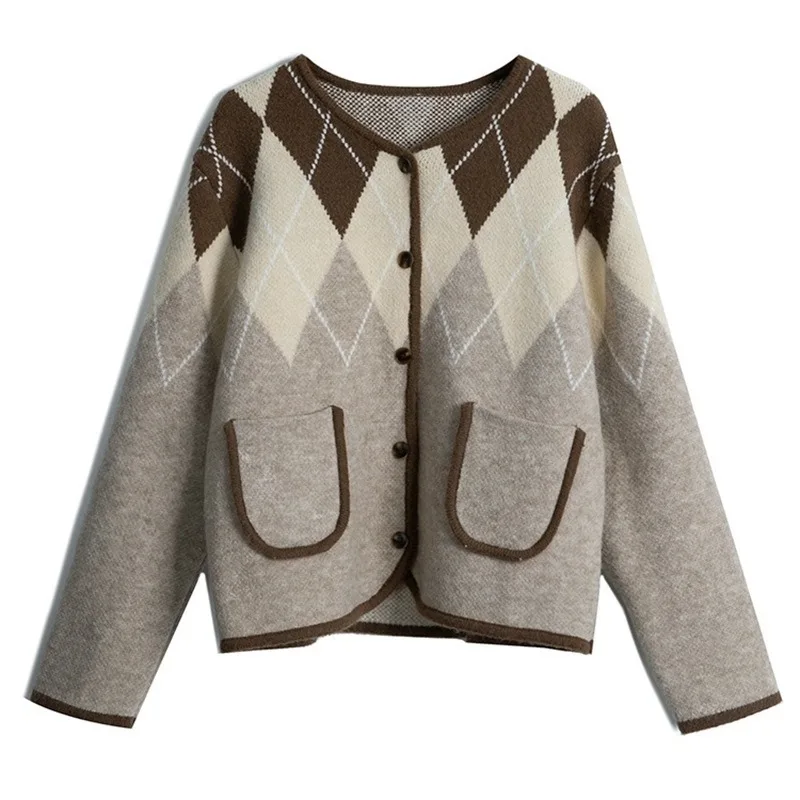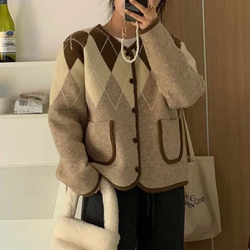 «Fall 2022 New Lazy Wind Sweater Coat Vintage Rhombus Plaid Loose Color Stitching Knitted Cardigan Women» по лучшей цене на рынке! Всего за 38$ (3610рублей)