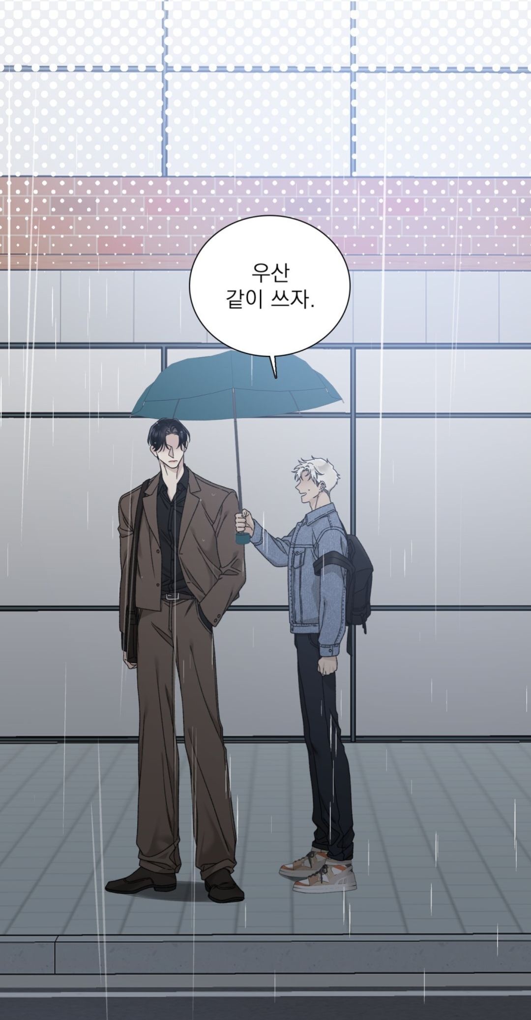 — Давай пойдём под зонтиком вместе.