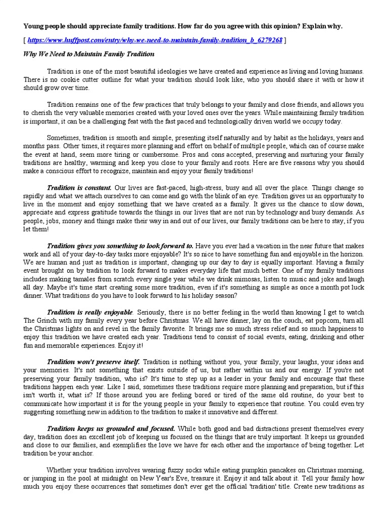 Family Tradition Essay | Bartleby