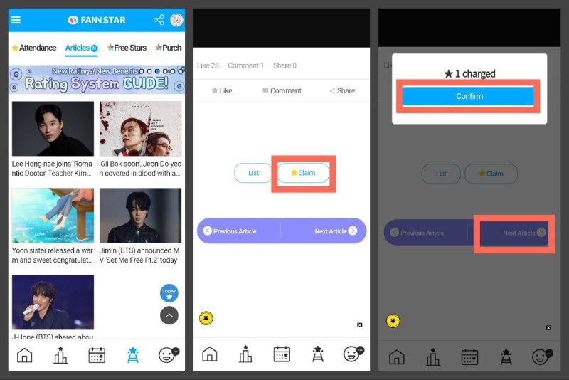 Небольшой лайфхак: достаточно часто приложение Fan N Star лагает и поддаётся с трудом. Однако некоторые действия для накопления сердец можно выполнять на сайте Fan N Star – чаще сайт работает лучше. Например, можно через сайт просматривать статьи и получать за это звёздочки. Но важно помнить, что не всё функции там доступны – на сайте нельзя смотреть рекламы, в том числе те, что для голосования. Поэтому бороться с лагами приложения всё же придётся.
