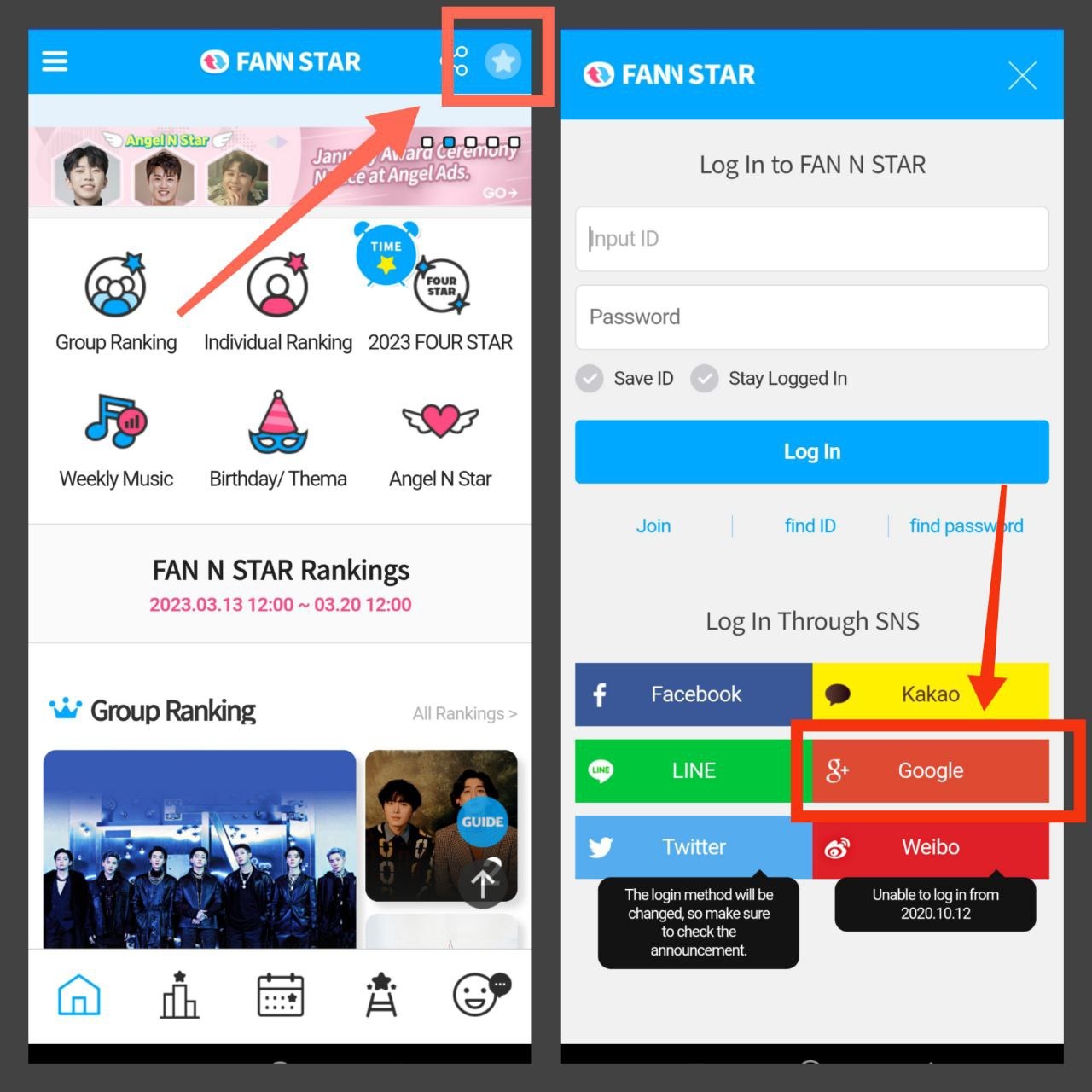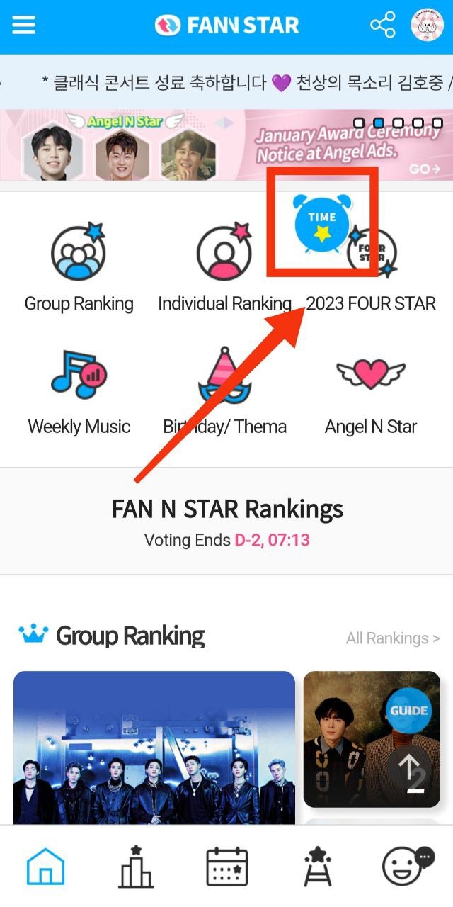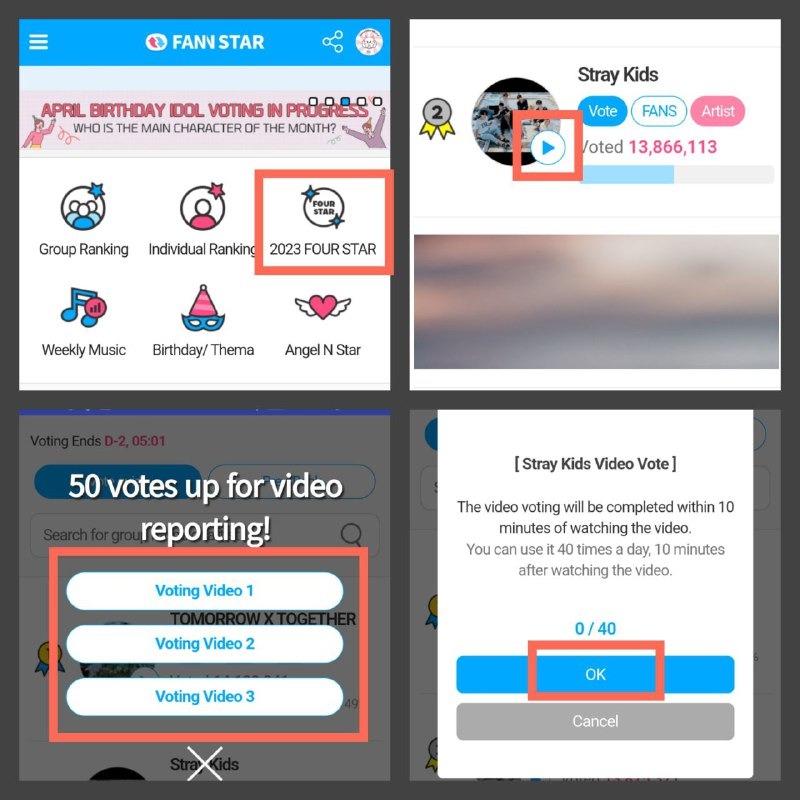 На главной странице выбираем раздел «FOUR STAR» и находим Stray Kids. Далее есть два варианта, как можно голосовать:
