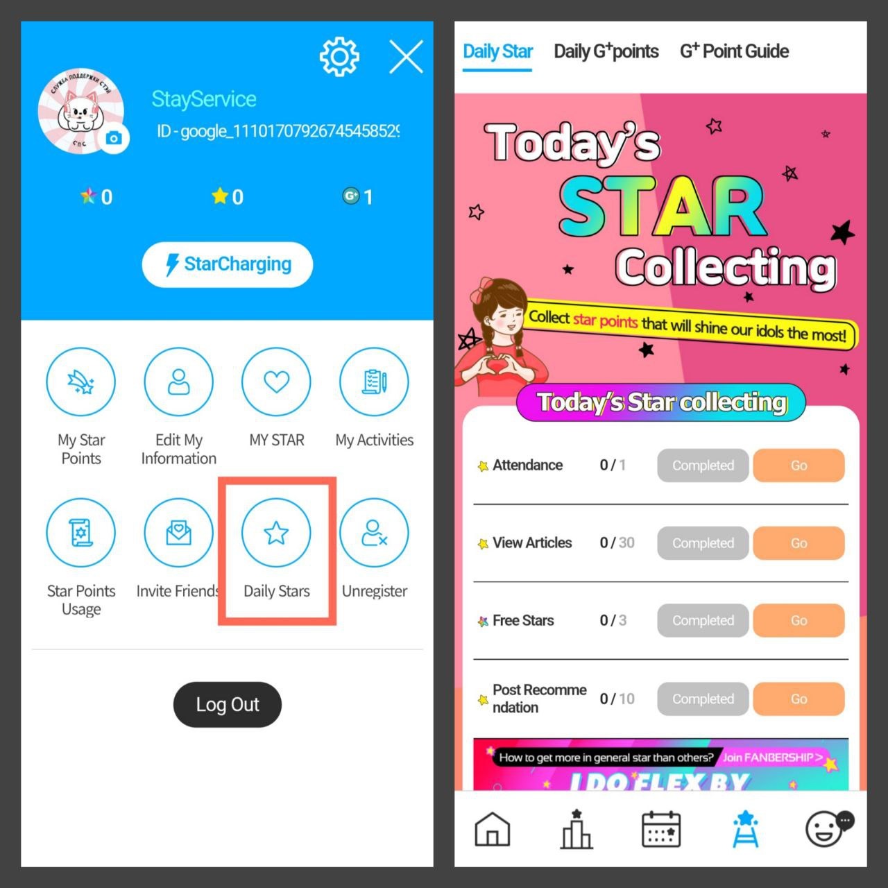 Непосредственно для накопления переходим во вкладку «Daily Stars», что находится на странице пользователя. Перед вами откроется страница со способами зарабатывания звёзд.