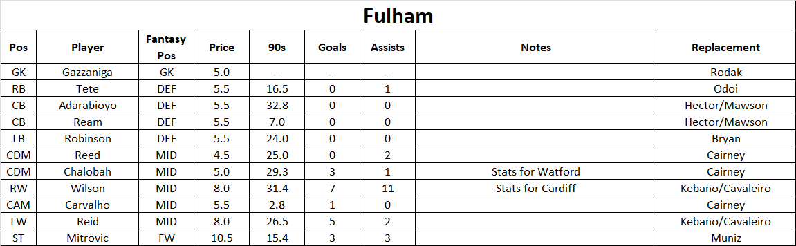 Notable departures: Christie (RB, end of Fulham loan), Ribeiro (LB, free agent), Knockaert (RW, end of Fulham loan), Krovinovic (CAM, end of Benfica loan), Ameobi (LW, Middlesbrough)