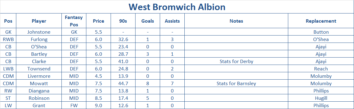 WEST BROMWICH ALBION (relegated team)