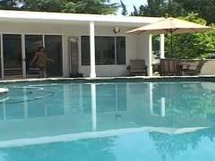 Farbiges Paar rammelt am Pool