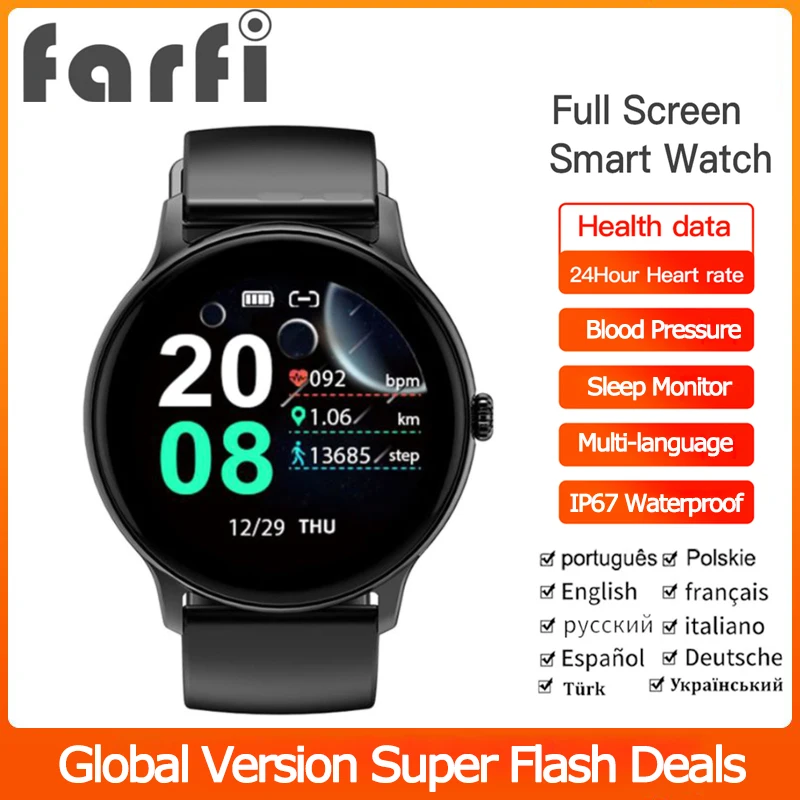 «Farfi PH12 Pro Full Touch Smart Watch Sports Fitness Blood Pressure Heart Rate Monitor Globle Version Smartwatch For Man/Women» по лучшей цене на рынке! Всего за 27$ (2565рублей)