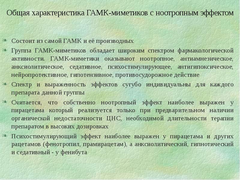 Ноотропы: описание фармакологической группы
