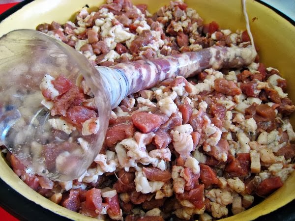Фарш для домашней колбасы в кишке